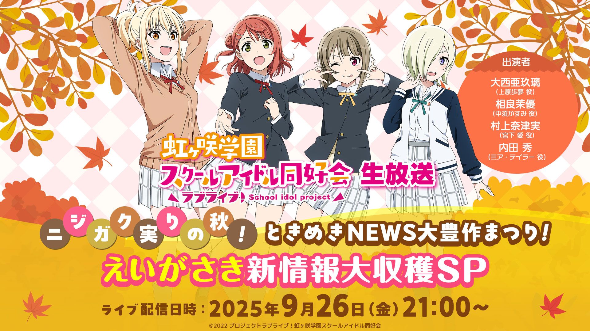 バンダイチャンネルpresents 「ラブライブ!虹ヶ咲学園スクールアイドル同好会スペシャル生放送 映画公開記念!あなたと振り返りたい♡アニガサキの思い出!」アーカイブ配信のお知らせ!