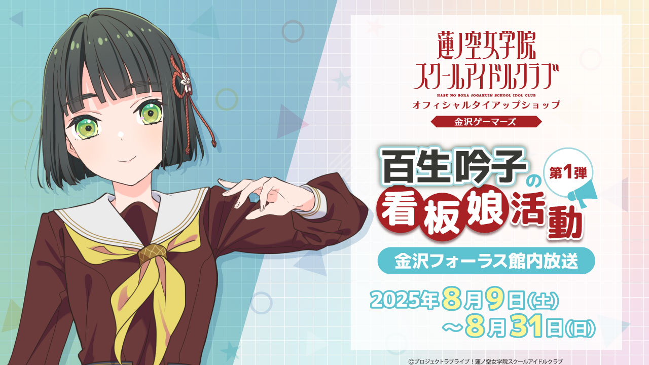 「ラブライブ!蓮ノ空女学院スクールアイドルクラブ」オフィシャルタイアップショップ金沢ゲーマーズ看板娘「百生吟子の看板娘活動」情報