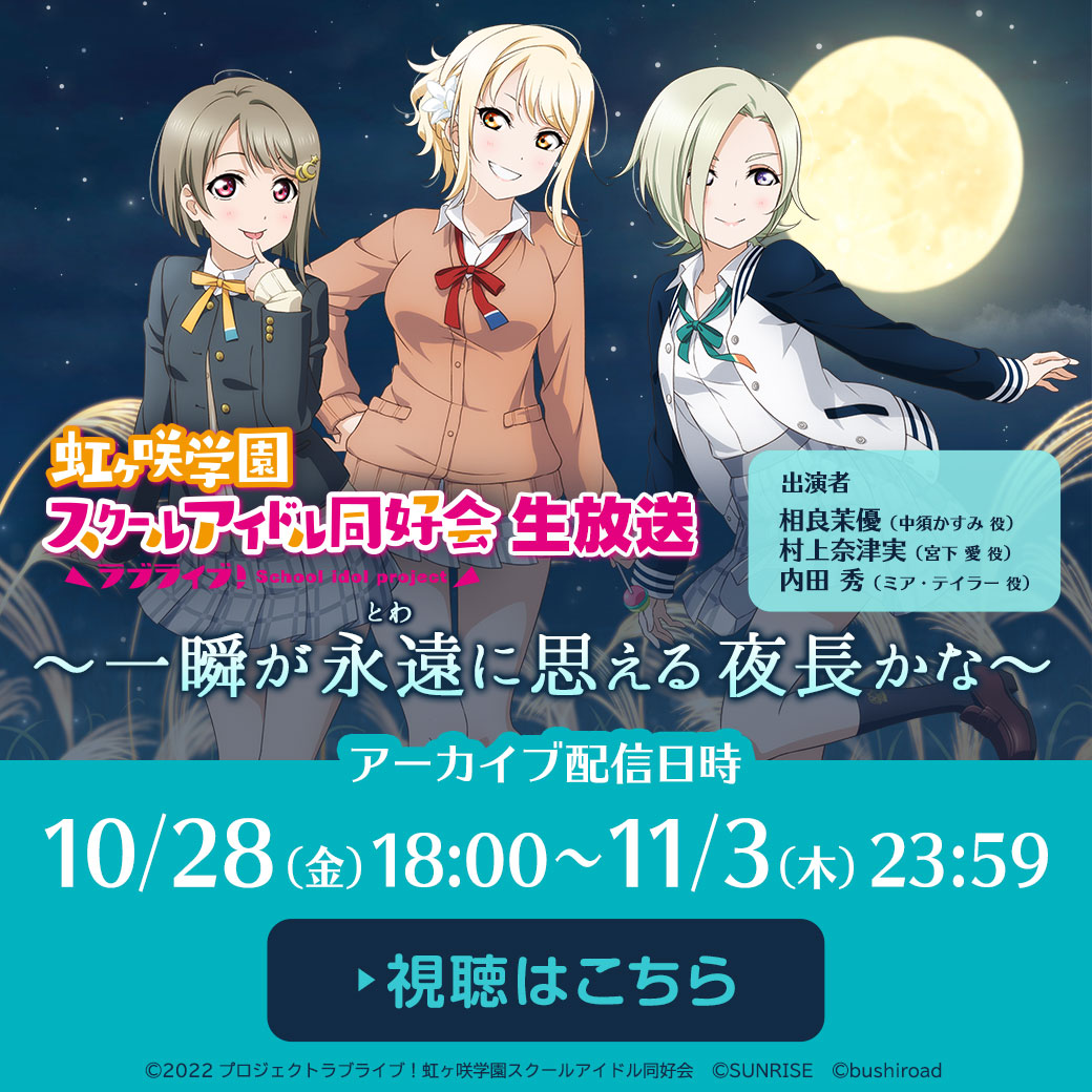 「ラブライブ!虹ヶ咲学園スクールアイドル同好会生放送 〜一瞬が 永遠に思える 夜長かな〜」アーカイブ配信決定!